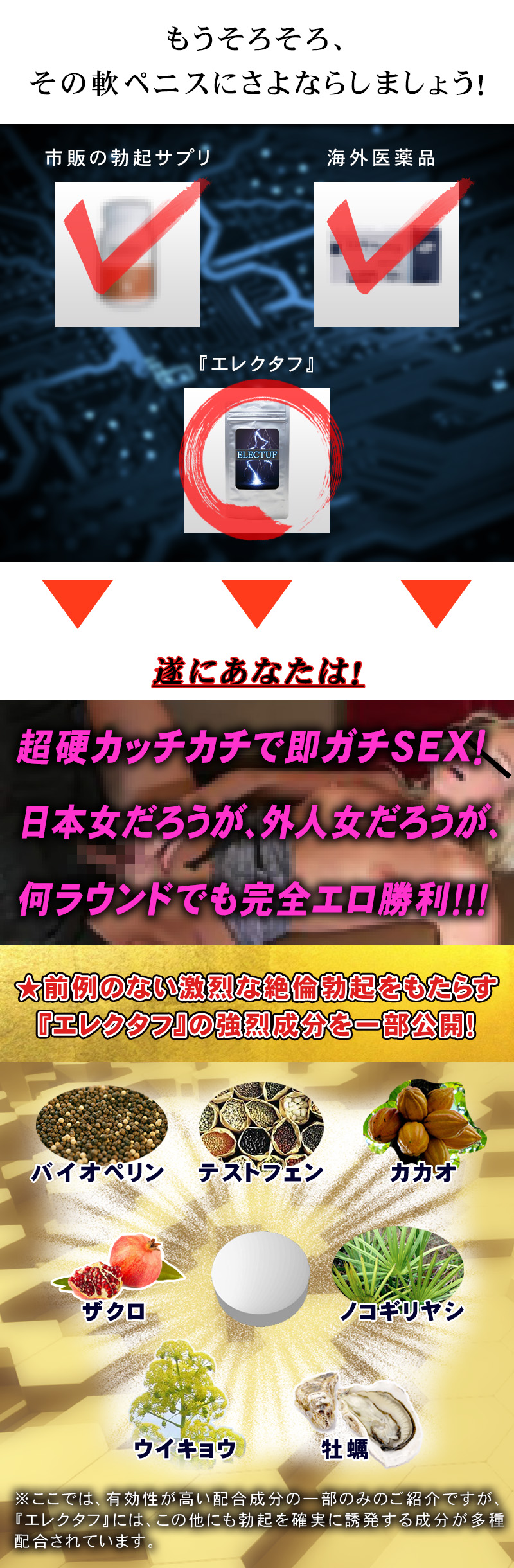 | 原材料名 | カカオエキス加工粉末(澱粉分解物、カカオ 抽出物)(国内製造)、 ウイキョウ末、 ガラナ末、 牡蠣エキス末(牡蠣エキス、タピオカデキストリン)、 ザクロ果汁末(デキストリン、ザクロ果汁)、 すっぽん粉末、 フェヌグリーク種子抽出物、 唐辛子、 黒胡椒抽出物、 ノコギリヤシエキス粉末 / セルロース、 ステアリン酸カルシウム、 微粒酸化ケイ素 |